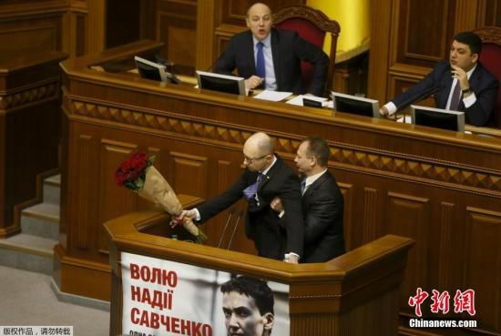 俄塔社动静称,那场斗殴发作在乌议会中亲总统的“波罗申科联盟”与亲总理的“人民阵线”两大党团之间。现场视频显示,当亚采纽克讲到“政府中那些不是由我们党派负责的部分,其行为与我无关”时,一名议员走上发言席,先是递给亚采纽克一束玫瑰,然后突然从死后抱住了他。猝不及防的亚采纽克双脚离地,虽然勤奋紧抓面前桌子,但仍是被抱离了发言席。