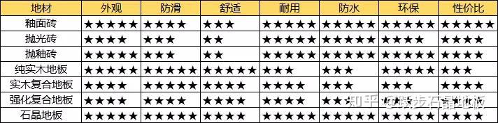 说了那么多,下面再用一张表格帮忙各人清点一下,其实每种地材都有本身的长处和不敷,按照利用情况和需求选择就ok了!