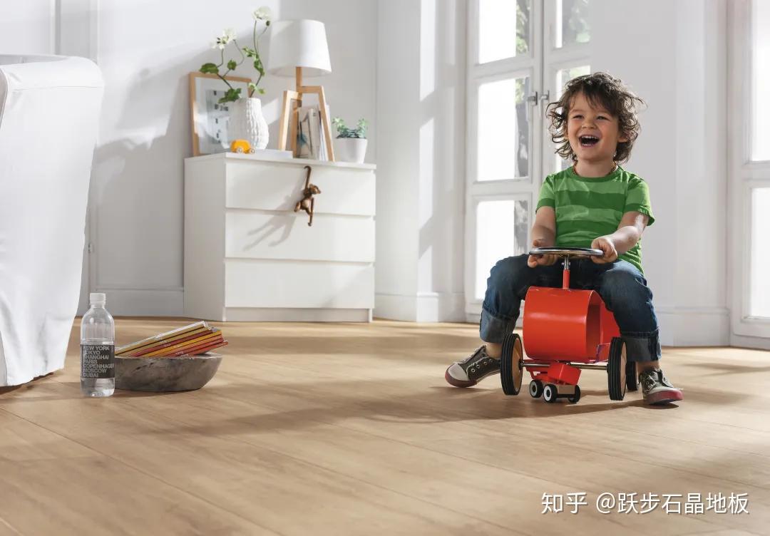 防滑:石晶地板的材量,特点就是遇水发涩,合适家里有白叟、小孩儿的家庭情况铺设。如,跃步石晶地板的防滑系数达R10级。