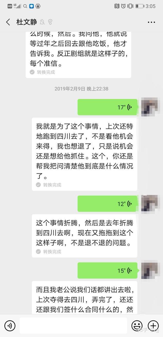 杜文静供给的剧组合同因为出于对杜WJ的信赖,加上她一再说没问题,我也消除了顾忌。接下来就是一年多的漫长期待。中间屡次对拍摄时间停止询问。下图为我在一年中屡次询问杜文静关于我孩子拍戏的工作,因为2018年10月份有改换过手机,只要部门询问拍戏工作的微信记录