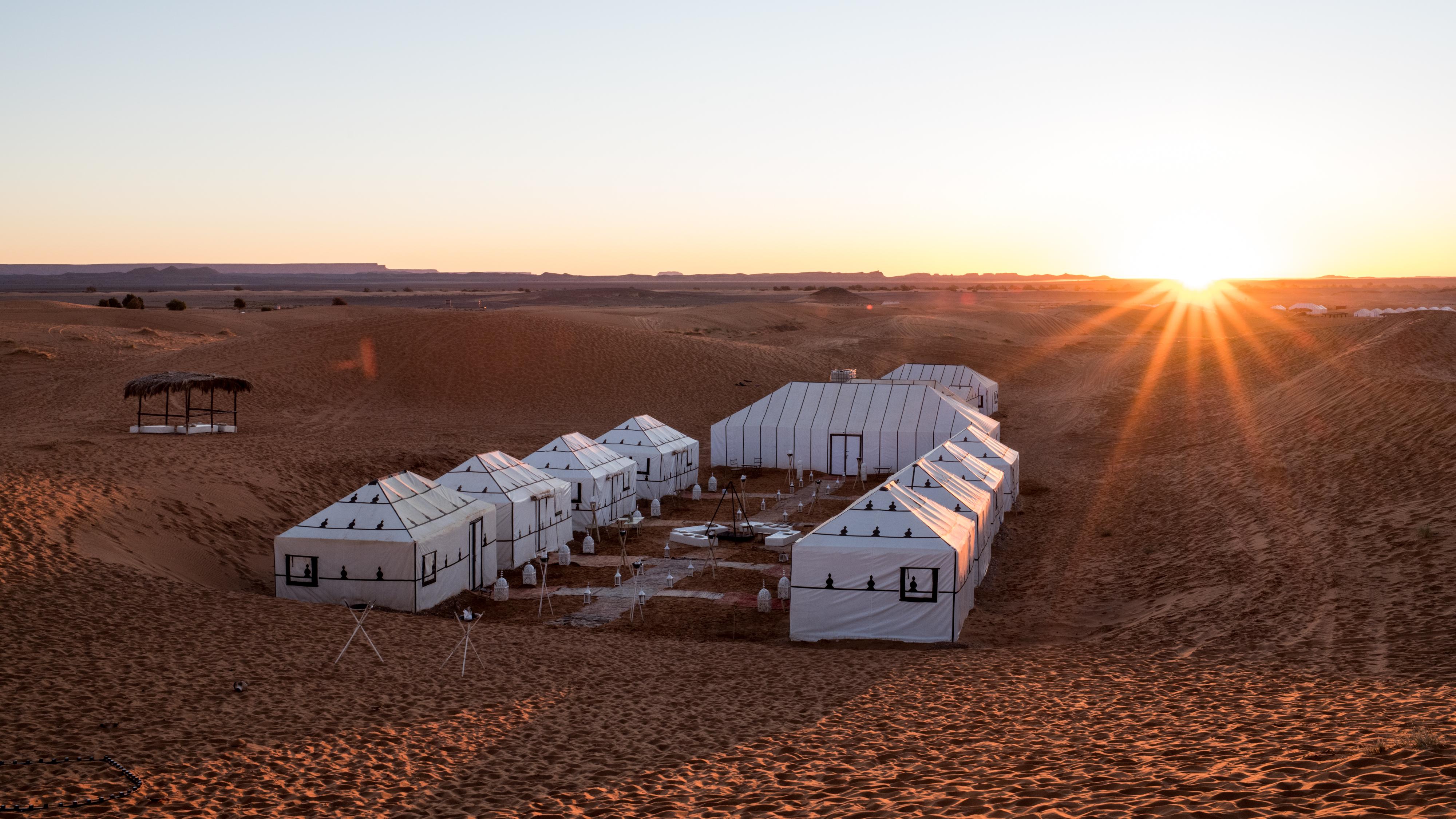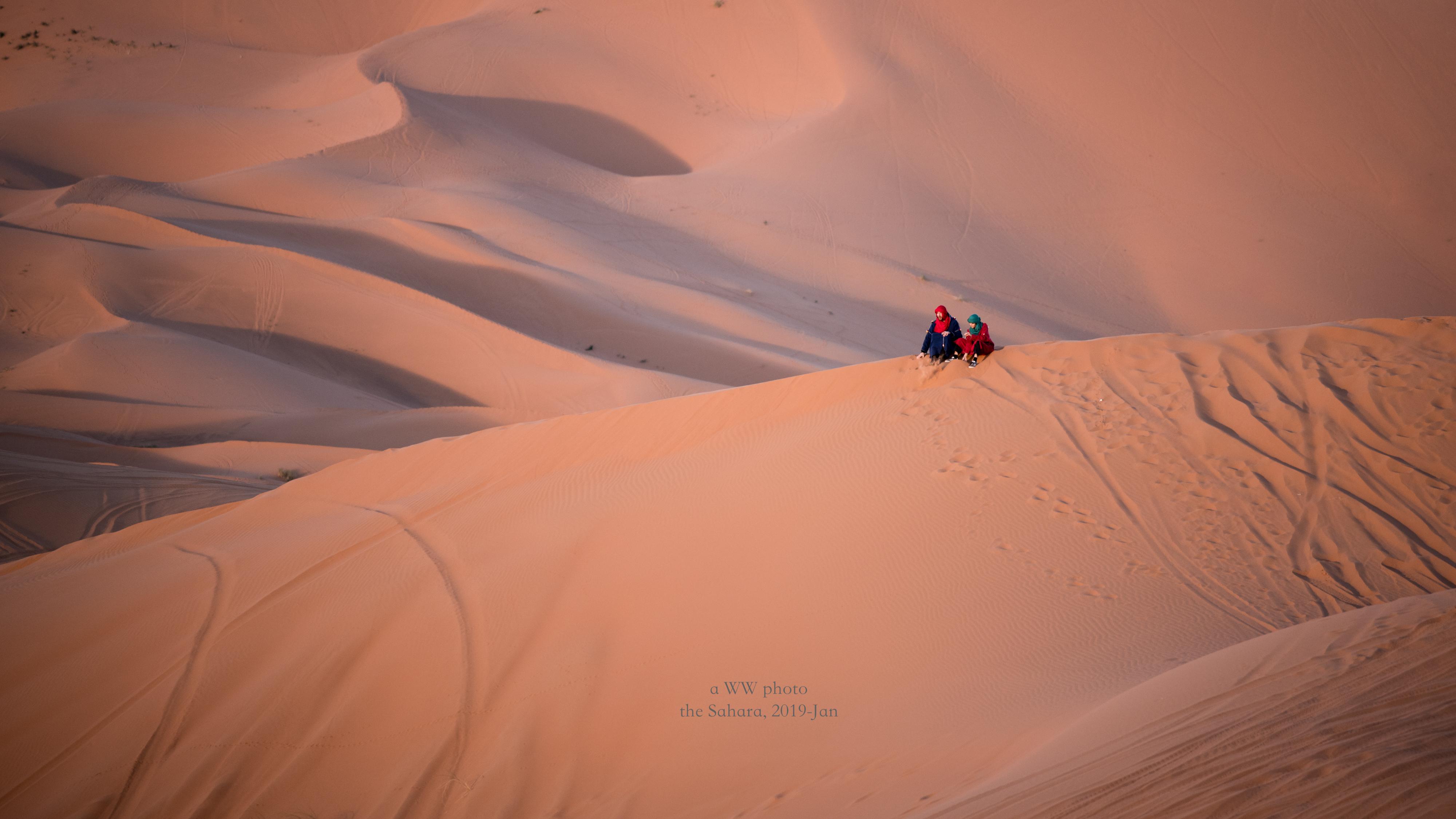 在撒哈拉旁观日出也是不成错过的,爬上沙丘,静静期待那一缕阳光的到来。