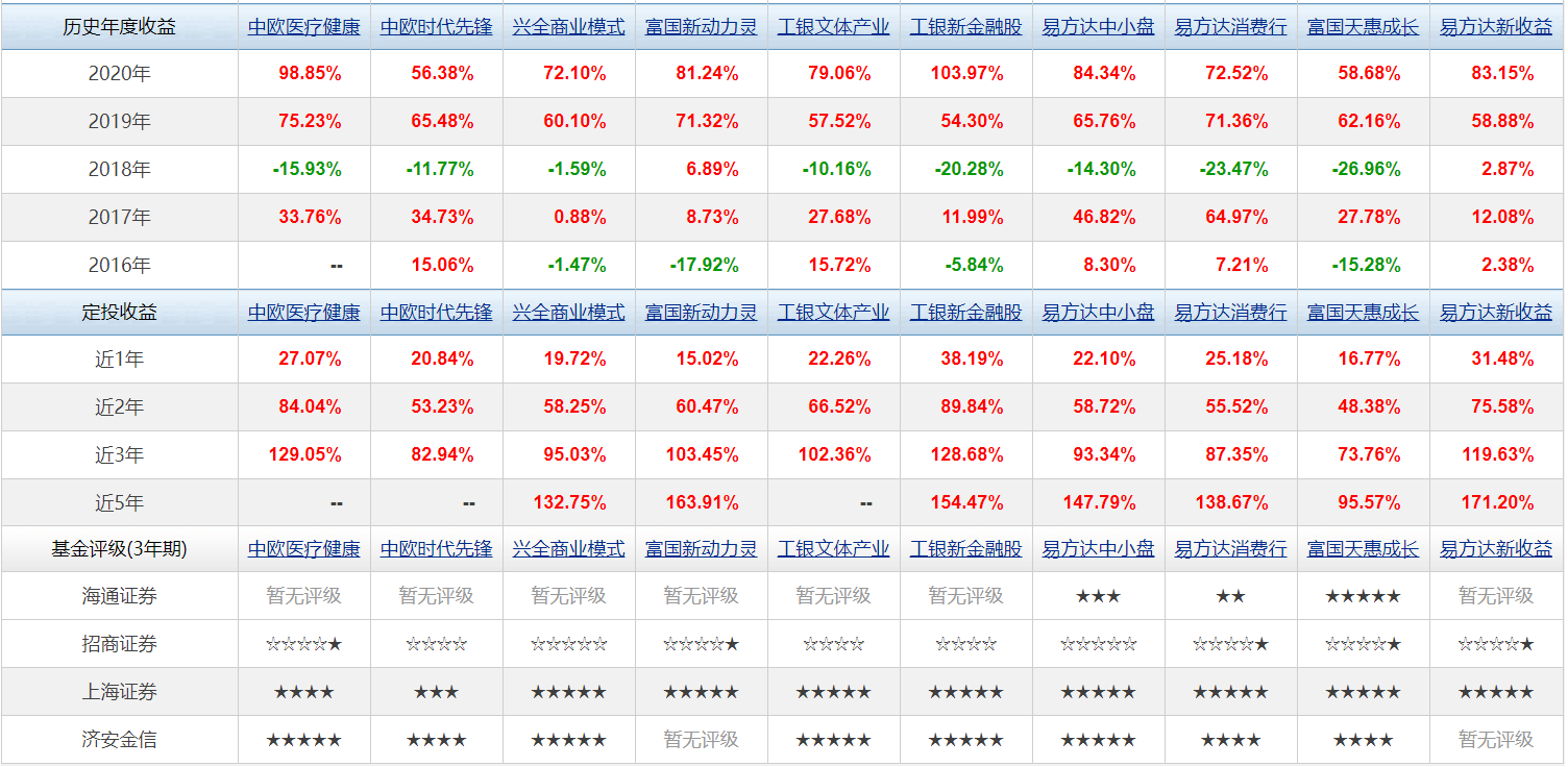假设懂行的伴侣会辨认出有一些名气大的公募基金不在那个列表中,好比易方达中小盘,中欧医疗安康混合等。易方达蓝筹成立未达三年,所以没有三年五年目标。