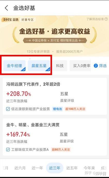 2. 优先选择“金牛副司理”和 "晨星五星"