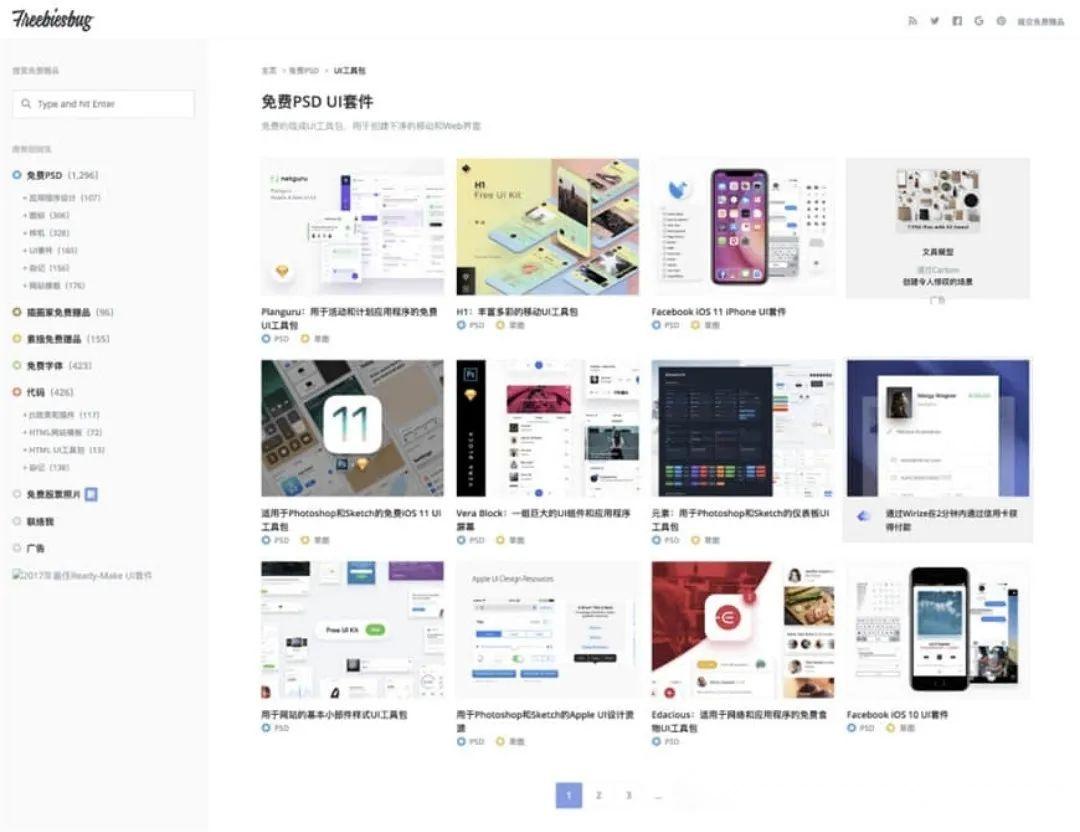 UI套件主页右边显示了各类的搜刮类别,内容包容高效率的页面模板,形形色色的UIKit和原型机,除了良多完全免费可民用的手写体之类。