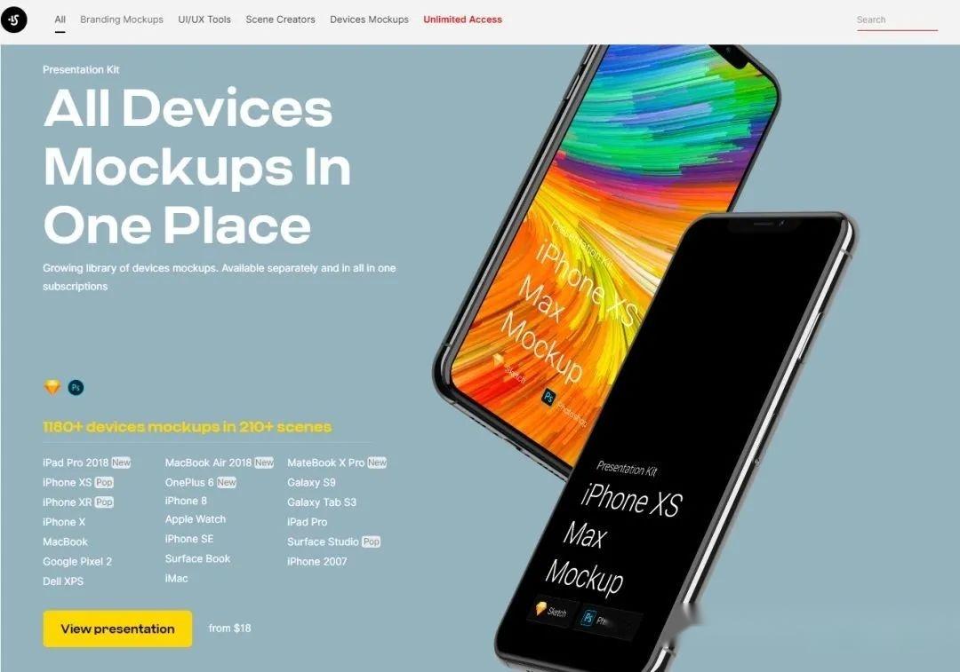 那个中文网站良知哥收藏已久,他里头有超多高效率的实体模子,分辩率超越4000px以上,文档格局大部门是PSD和Sketch,并且根本都是新一代的模子,手机、电脑、明信片、告白、包拆全都有,分类齐备,根本有那个就能满足大部门的需求。
