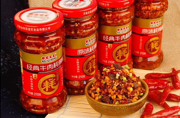 河南桃园建民耗辣椒源自调友@灰灰不是肥、@marie的所保举源自河南的百年老牌。咔嘣脆的干造牛肉颗粒,配上满眼的香酥的花生、芝麻、瓜子,我调同事废话君暗示,就着它一口气吃4个馒头不吃力。相较起其他辣酱,耗辣椒的辣油更多,吃起来却完全不油腻,但整体咸味不重,不太合适重口的盆友。