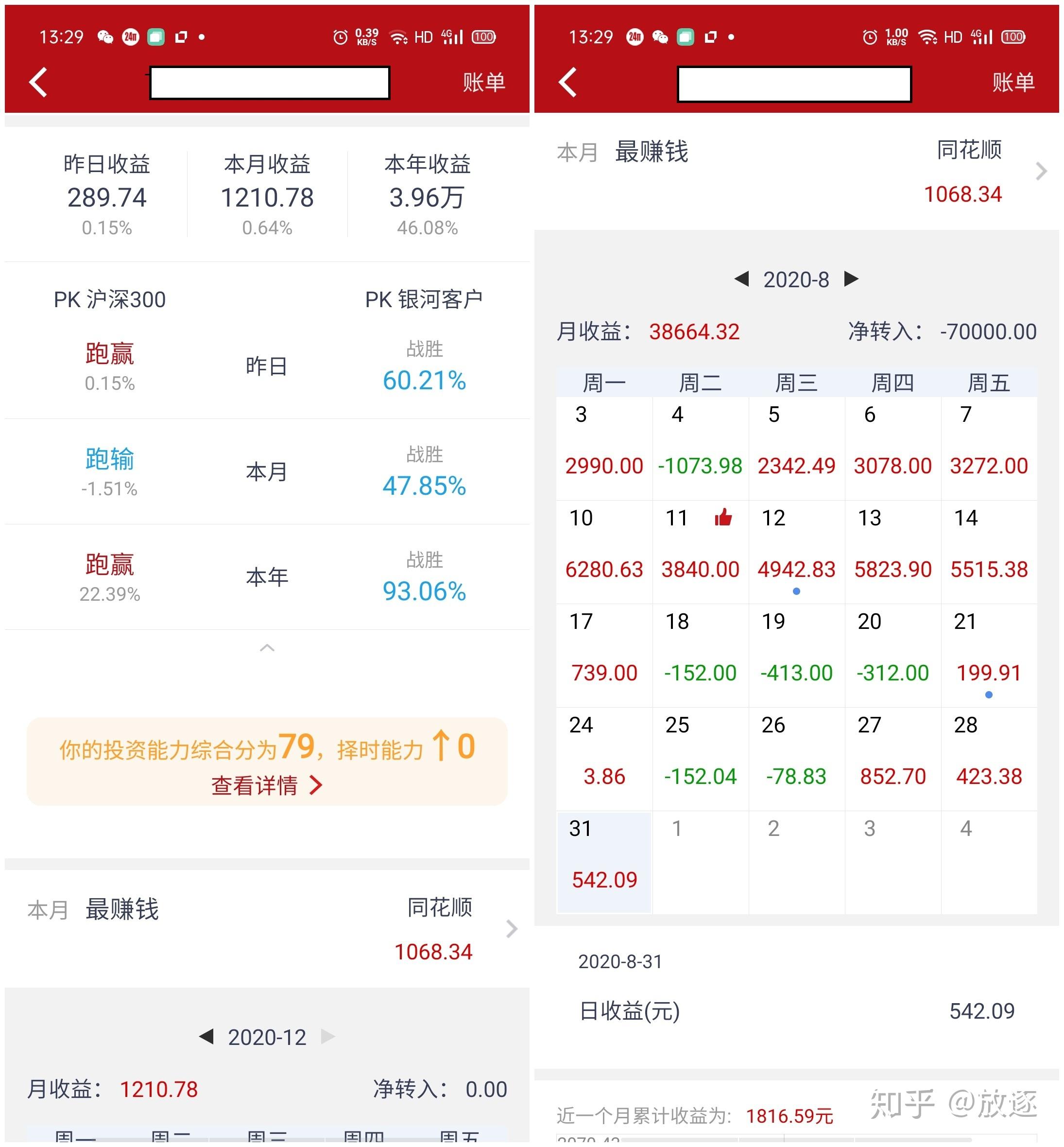更大的长处,能查看过去两年每个月的投资收益名列,没今天,本周的名列,