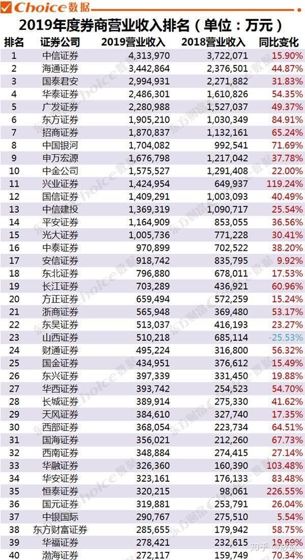 年度收入超越百亿元的有15家投资参谋公司,较之2018年增加4家;收入在10-100亿元的共58家,也比去年同期多8家,规模再上台阶,意味着券业整体业绩回温。