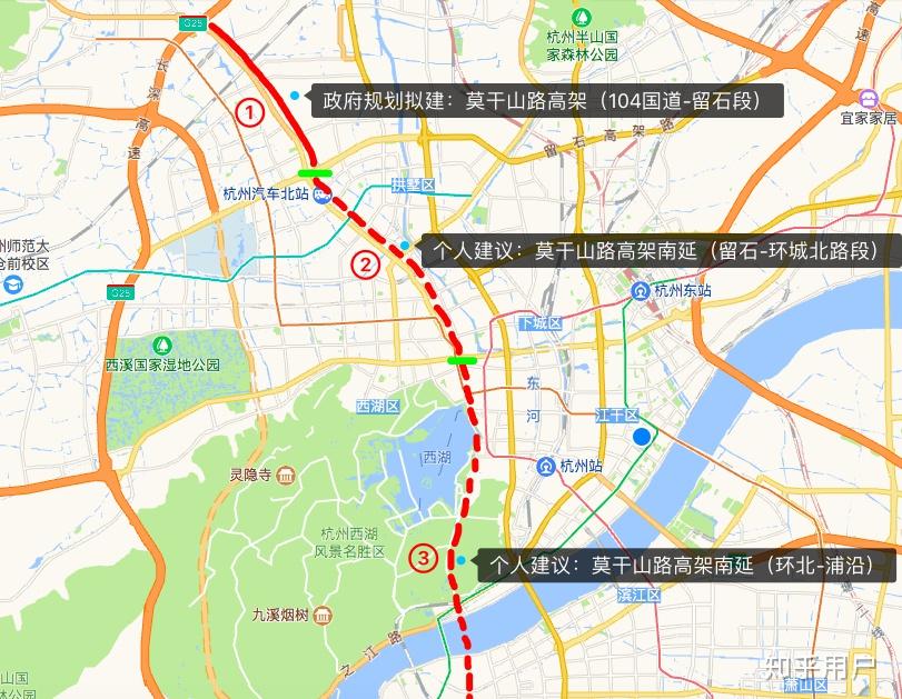 ▲ 莫干山路高架规划及建议图据悉,新建莫干山路高架,已在政府规划方案中,该工程南起留石快速路,北至104国道,传说风闻将于本年12月开工,设想为双向六车道。但那个计划,最末只建立北段,即留石高架北侧(上图①),在城西文教区内的莫干山路南侧(上图②)尚无建立方案,实属遗憾,希望后续能纳入考虑。而且,还可考虑从环城北路沿环城西路—南山路—玉皇山路南延至滨江浦沿(上图③),全路段可选择地下隧道计划,免除S中心**工做,操纵现有西湖隧道也不至于毁坏西湖景不雅和天际线,该计划估计将极大缓解中河高架的交通压力,有效缓解S中心拥堵情况。