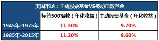 60年的时间里,美国S场主动股票基金收益率均跑不外被动指数基金。