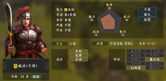 那一代的智将其实都是半个残废,顶着低武力出门,随时要担忧触发单挑或者被猛将们的核弹战法轰炸,即便是诸葛亮也可能被五猛将一个战法轰掉一万以上,所以必需不寒而栗地操做。拯救他们的是能够停止长途攻击的雁行阵,而当曹操周瑜诸葛亮都因为拥有雁行阵而粉墨登场时,只能玩近程攻击的司马懿一小我在角落里黯然神伤。演义里在魏延手上走了三个回合的他固然拥有强力的战法,但因为必需和仇敌近间隔屠杀,成了一位很容易触发单挑的猛男军师。