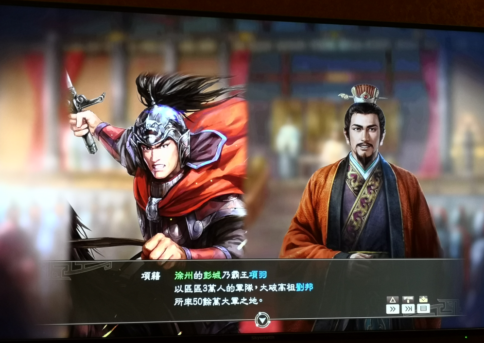 古代武将在游戏里不断是一个诡异的存在,例如311里张良会说出本身要成为主公的再世张良那种台词。而本做的地域造压剧情的台词里会提到刘邦项羽管仲那几个古代武将,玩家若是用当事人做军师,就会呈现以下猛男自夸的画面。