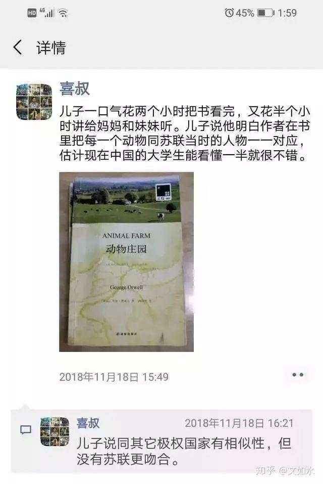 占全喜曾在本身伴侣圈里夸耀,说小儿子两个小时读完《动物庄园》,对妈妈和妹妹讲,那书是在跟苏联如许的集权国度、其时的人物逐个对应,如许的原生家庭,叫人毛骨悚然。