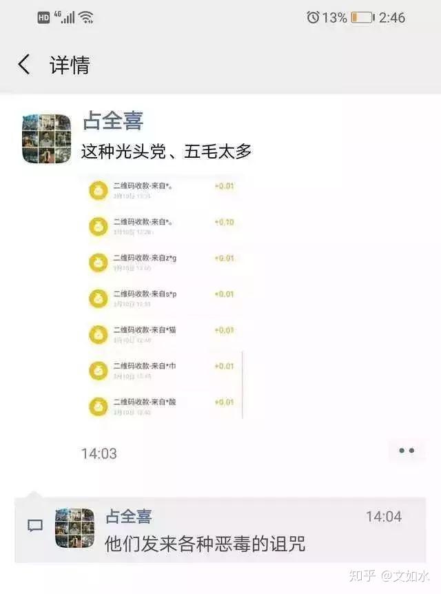 一些网民给占全喜账号打去1毛钱,还有网民贴出占全喜为天价医疗费用和英国医疗轨制辩白的文字,量疑占家为什么不去英国搞“医疗男女平等运动”。