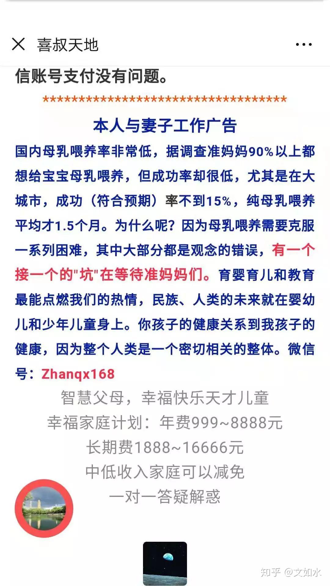 就在17日推送的该文“孩子,我是个低微的父亲”中,占全喜历数占Bagalkot从小到大遭到几家庭溺爱,后来又是多么奋发自学,而本身因为撑持占Bagalkot根底教育男女平等,成了国度的功人,某些权力的眼中钉,因而他要尽到父亲的责任,把筹到的钱5年还完。下面,占全喜诡异地话锋一转,贴出一则他和老婆的工做告白,母乳喂养和聪慧父母天才儿童幸福家庭方案,年费收999~8888元,持久费1888~16666元,加占全喜小我QQ,一对一答疑解惑。