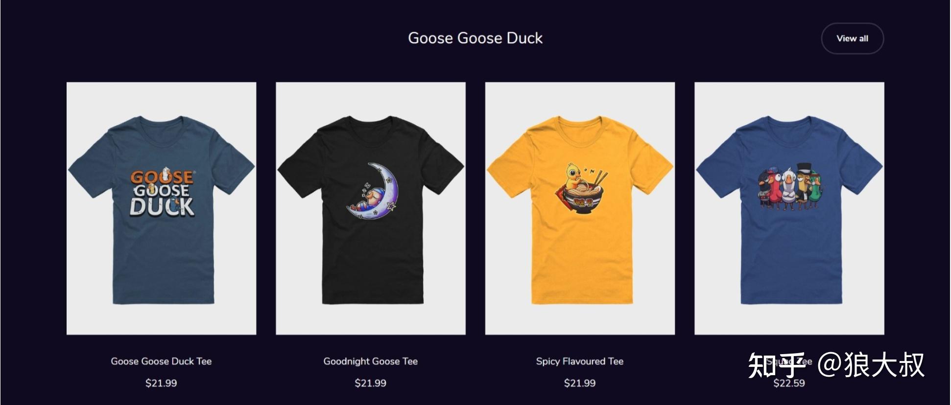 游戏内消费二、周边商城。在官网上,《Goose Goose Duck》也热衷于停止周边的售卖,T恤、卫衣、水杯、键鼠垫等包罗万象。