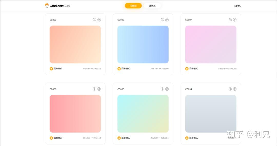 起首他是两个渐变色中文网站,里头有许多渐变色的形式,间接复造拿到PPT上就能用。