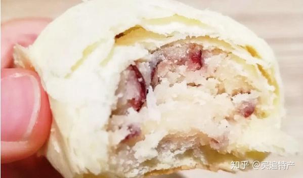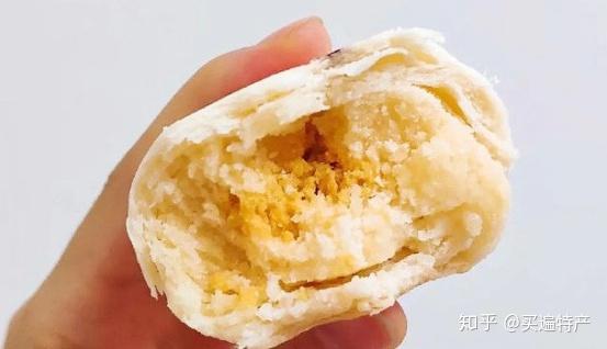 白色的酥皮装点了散落的淡黄色蛋黄碎