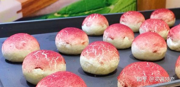 法海饼红白配,饼面铺了一层红色的甜根粉