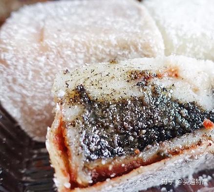 如粉色的豆沙馅儿、绿色的抹茶馅儿