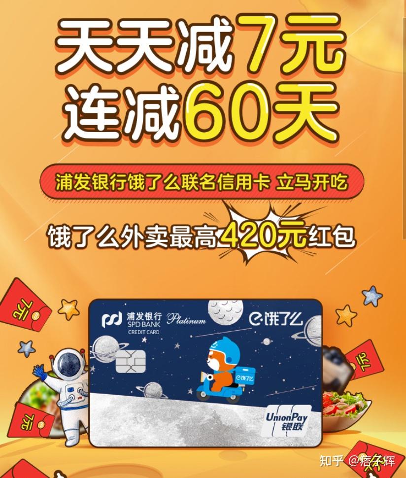 消费满6次免次年年费饿了么外卖天天减7元新户核卡后30天(含)内利用该卡消费一笔肆意金额,即可在达标后获得60个7元饿了么付出红包,红包每日发放1个,持续发放60日;