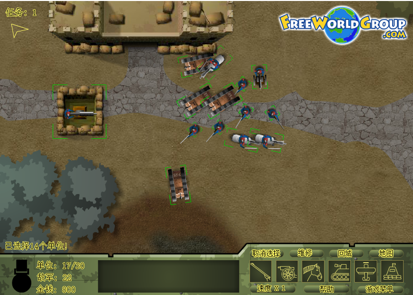 气概阴暗的类红警小肉搏游戏,建筑物与下层单元的比例没红警那么离谱,可惜一局能造的下层单元较少并且操做性欠安。玩家攻略: