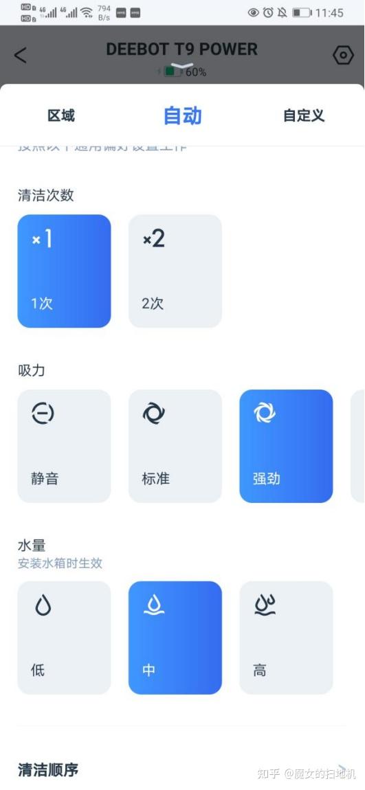 扫地机器人器人几乎所有的操做指令都能够通过app来设置装备摆设完成。在主模块上面,在主模块上面,能够分为主动清扫、根据划分区域清扫和自定义区域清扫。一些根本设置如下,包罗清洁次数、4档吸力调理、拖地时候的水量控造、清洁空间的挨次、拖地形式的选择、能否释放香氛等等。值得一提的是,关于差别的空间,能够自定义水量、吸力和清洁次数,如许各人就能够更有的放矢的清洁家庭的差别区域了。