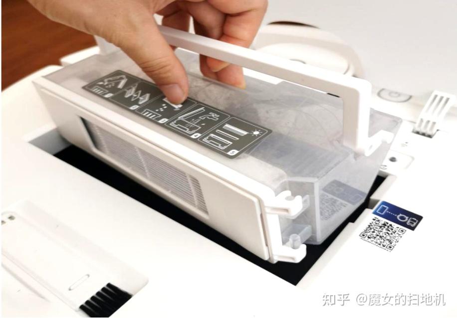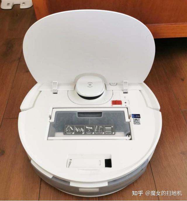 干完活之后,就默默的回充,期待下一次的清洁使命。申明书上说充电时更好将水箱取下,水箱取下拆上都十分的便利,只要悄悄一按就能够抽出来。然后我就猎奇的翻开了主机,看看那货把垃圾都收到哪里去了呢?谜底就是那个集尘盒:
