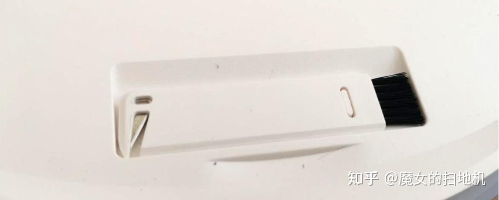 取下来的时候很便利,提拉式的取出,旁边还有一个专门的清洁刷,用于清理集尘盒内部的尘埃,刷子是两用的,一头是毛刷,一头是小刀,可用于清理主刷头上的毛发。