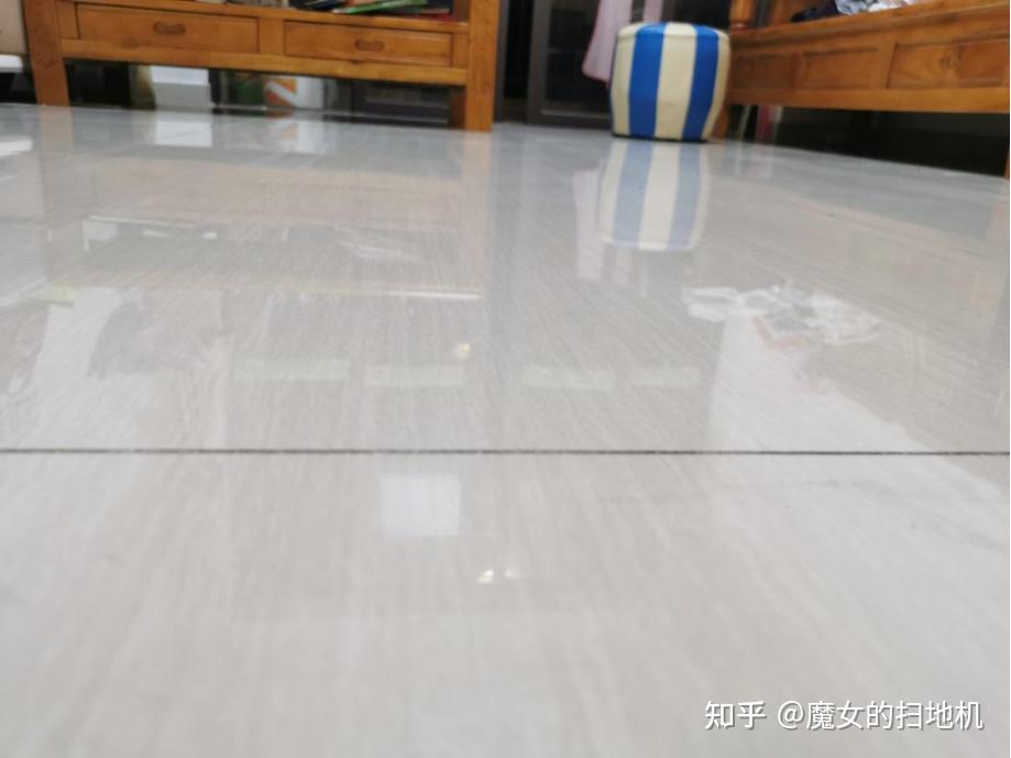 看看拖完地的区域,光洁透亮,少量的水印几秒钟就天然风干了。