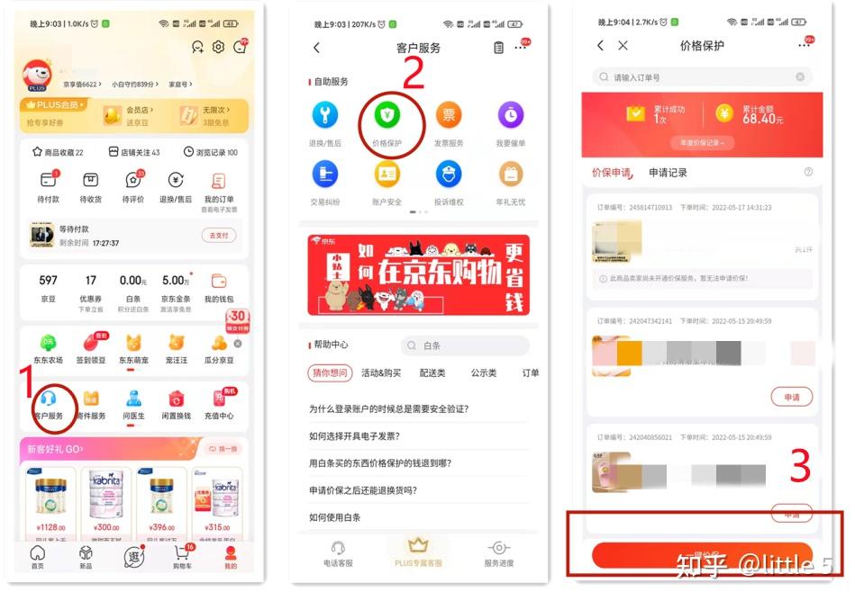 详细的保价流程:翻开京东APP点“我的-客户办事(东西与办事栏目中)-价格庇护-一键保价”,一路点过来即可保价。