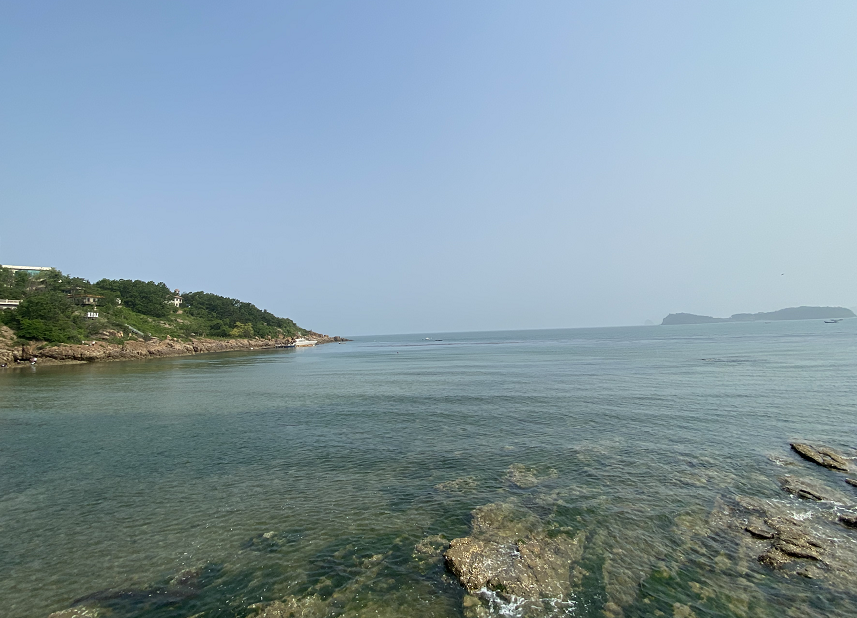 上午,远处的海看不清晰,自海上飘过来的水汽拢住了山景,飘渺虚幻。仿佛仙岛一般。也是别样的神韵。