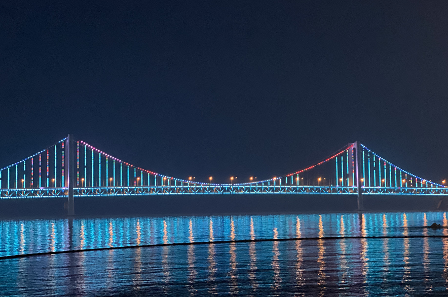 固然没有看到碧蓝的海水,但是如许钢金水泥的大桥,也是满满的科技感。