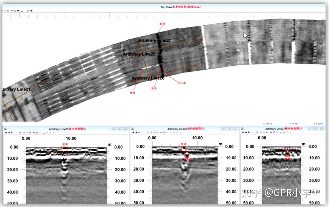 rSlicer处置3D-Radar,处置软Examiner,阿谁处置比MALA更复杂些,但它的表白比rSlicer更方面,可能与老外的思维体例有关,比来看了樊登的《可复造的指导力》那本书,说老外的思维就是第一步、第二步,接着就OK了。一、干扰按捺Interference suppression;二、Automatic ground alignment,找空中;三、反傅里叶变更ISDFT,就是把频次域统计数据酿成时间域统计数据;四、Autoscale;五、BGR(滤波);六、Edge filter边沿加强滤波;阿谁处置吗太费事。但说实话我最喜好阿谁应用软件,功用太强大,介面太都雅,除了处置最费事,其它的我都给满分,它有两个视图,两个是俯视图overview,两个是群众视图,俯视图就是把测线间接加载进世界地图,太帅了,欠好意思多放了几张图,群众视图就是并行表白三个切面,三维测线切面图、横向切碎图、水准切碎图,主视图就是三维测线切面图!