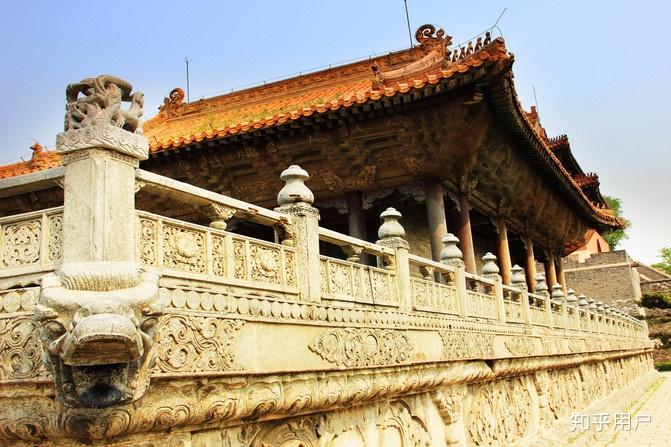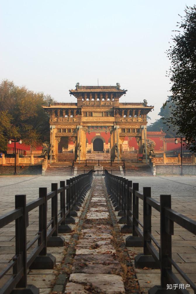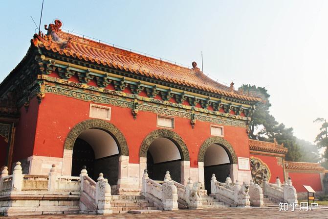 出碑亭即至隆恩门。隆恩门是方城的正南门,与碑亭相对。方城为后部,它建造得好像城池一般,位于缭墙,似乎是城中之城。游方城先要游隆恩殿。隆恩殿居于方城中心,前有隆恩门,后有明楼,摆布有配殿,四隅有角楼,犹如寡星拱月一般,故显得异常宏伟。
