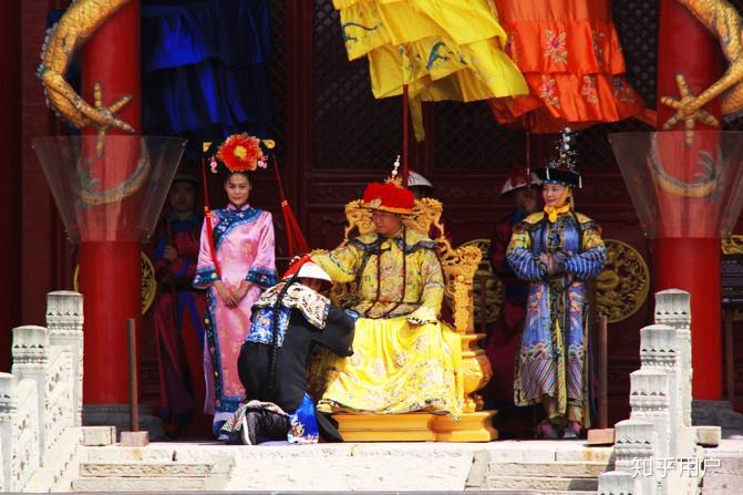 皇帝陛下升座大殿,寡王公官员人等恭迎圣驾!崇政殿前,只见气势的皇帝在黄马褂御前侍卫、八旗护兵前引后拥下,踱着方步行至宝座。