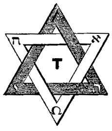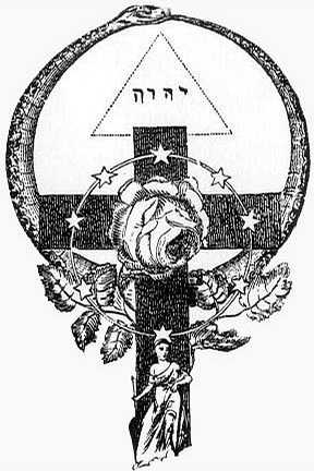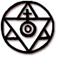中心的”太阳”和”十字架”是”神圣的标记”, 被两个” 等边三角形”(代表”完美的元素”)包抄着。 那些被放在一个圆圈的里, 象征着”永久的、精神的和无限的可能”。