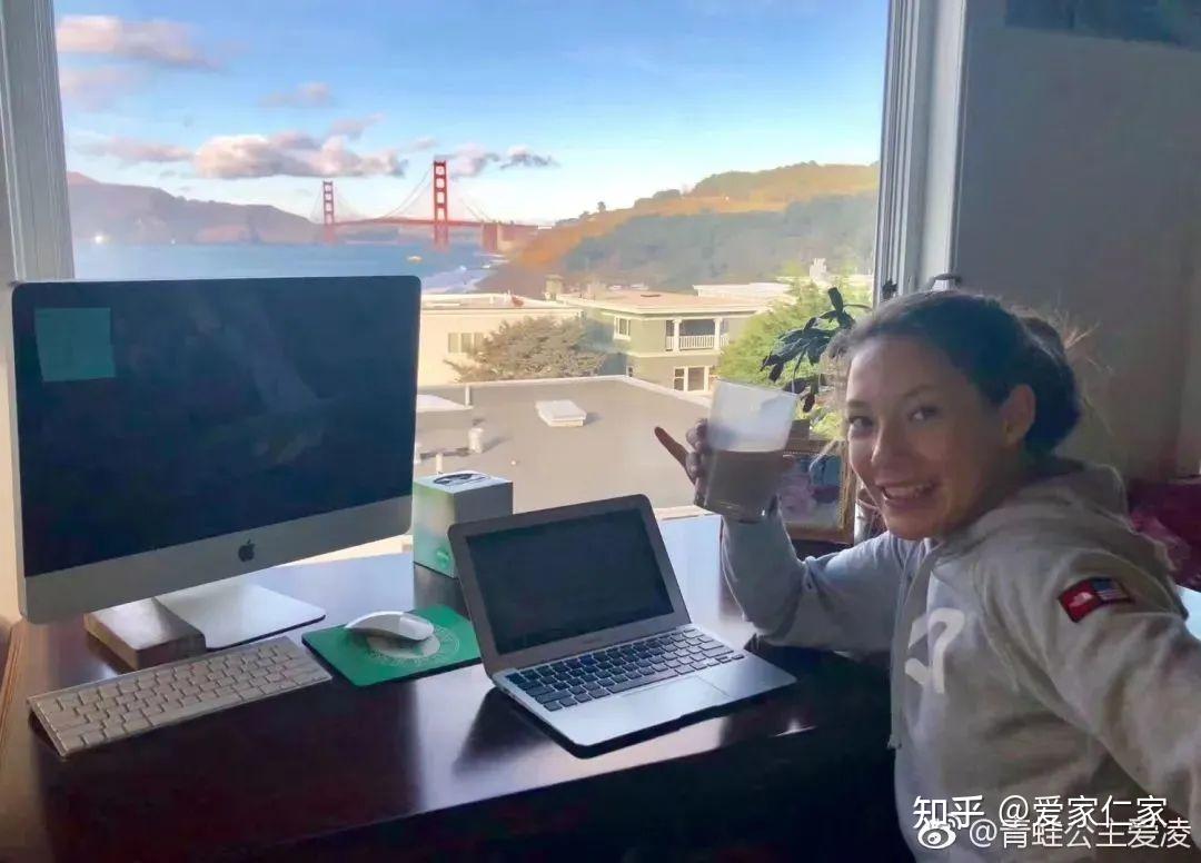 不外她仿佛其实不喜好固定在某个位置工做,她在窗前还有一张书桌,一昂首就能看到红色的江桥和远山。