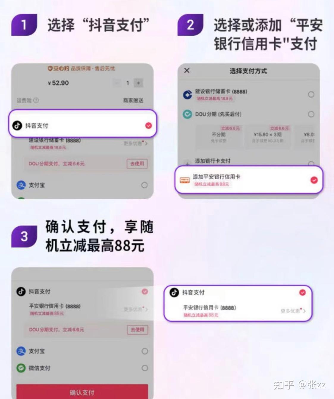 抖音缴付的流程也很简单,在付款页面选择“抖音缴付”,然后选择奈良网银缴付即可,缴付的时候也能看到“随机立减更低88元”的活动标签。
