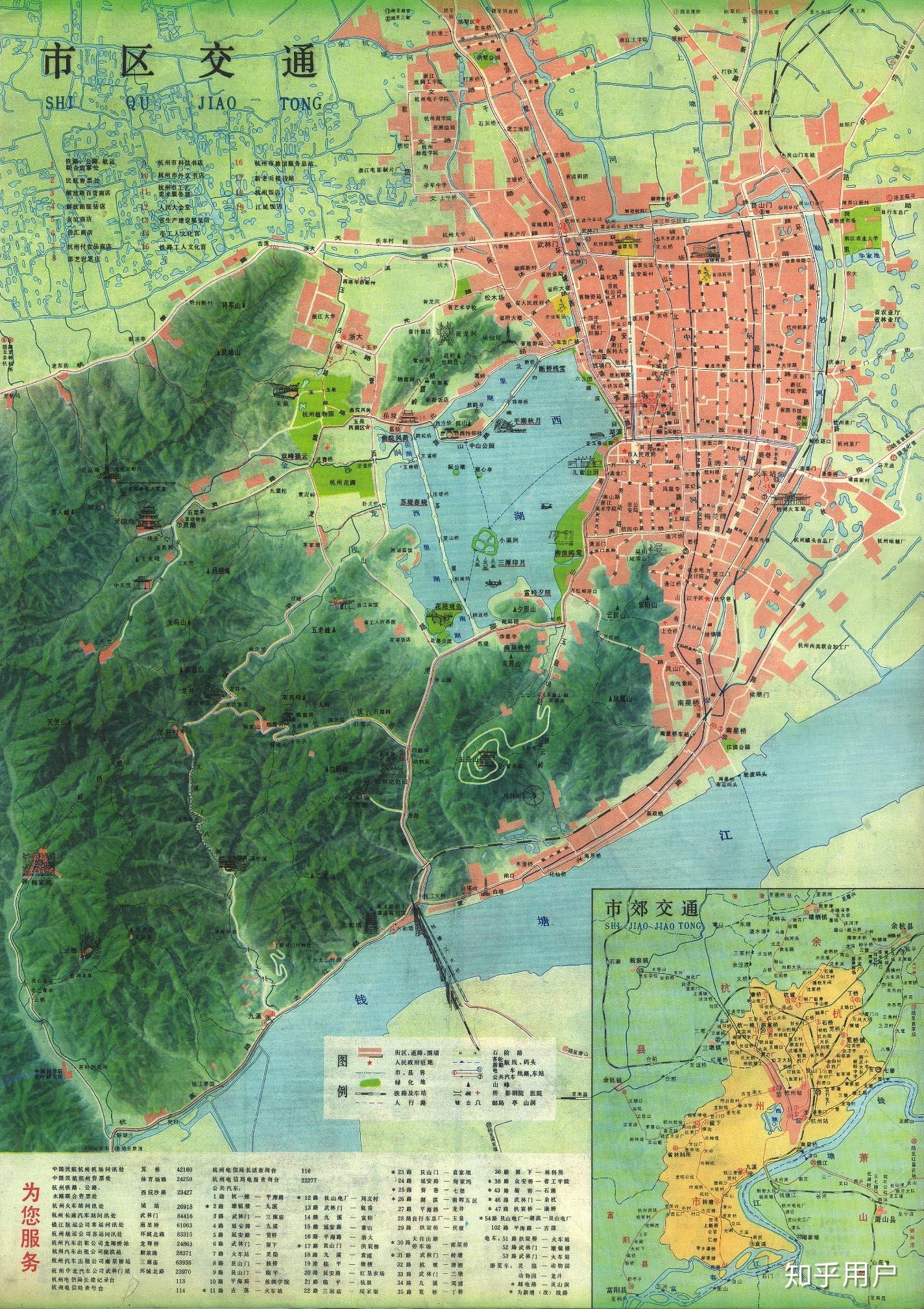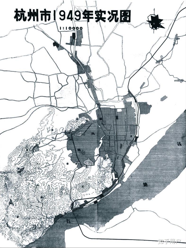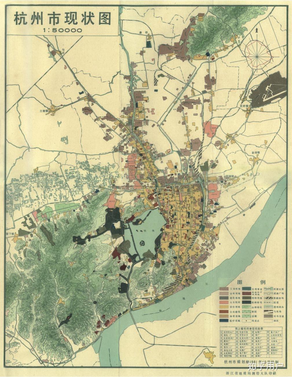 1995年杭州现状图。丰潭路以西早已起头呈现连片室第。滨江浦沿一带早已起头开发。
