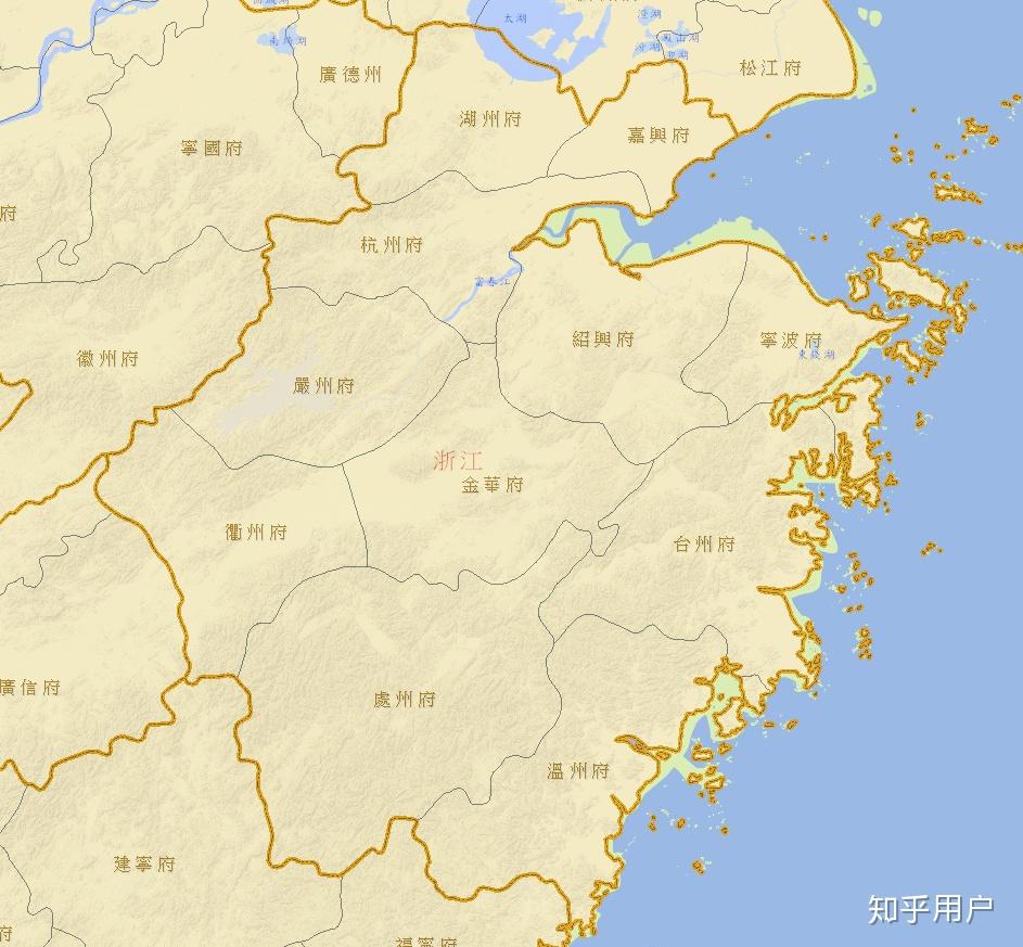 清代浙江各府。台州和湖州是建国后区划调整的更大输家。汗青期间杭州湾北岸的海岸线和如今有很大区别,如今的良多地盘都是解放后围垦而来的。