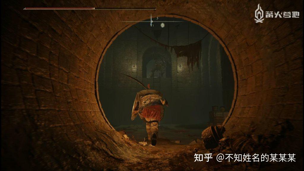 进入铁门后左转,立即碰到一个岔路,右转向上跑,绕过前方咒蛙继续向前走,走到尽头右转向上跑,进入开阔区域后,遁藏前方的胖仇敌,从右前方的梯子爬上去,跑过中间的木桥,推开对面的门,激活前方房间内的赐福「地底大道旁」。