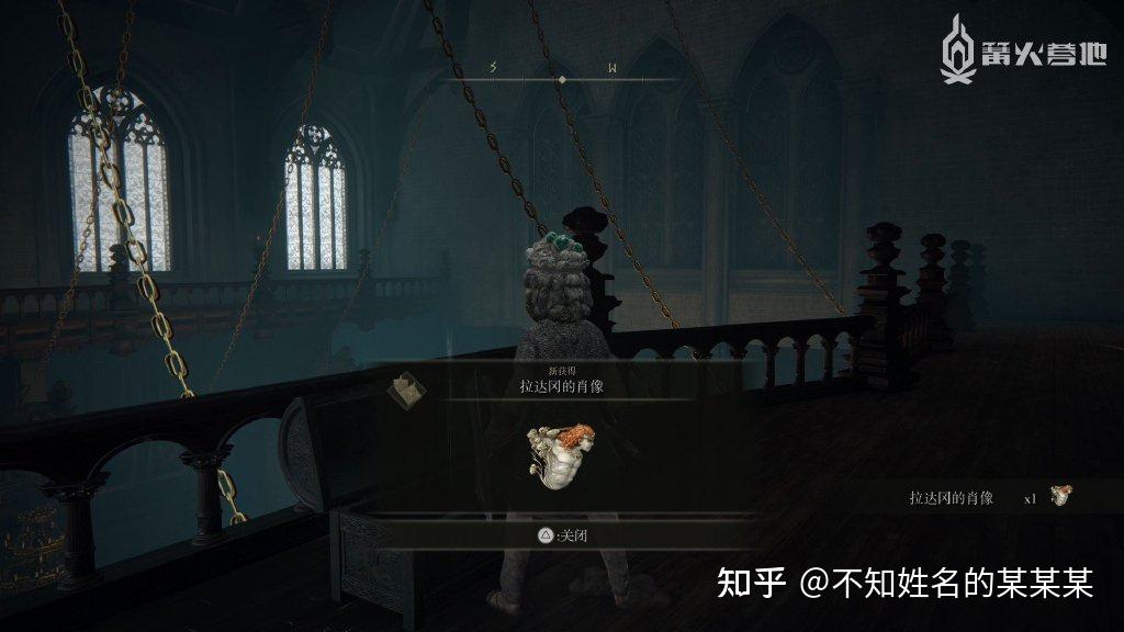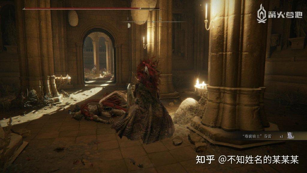 赐福「祷告室」动身,贴着右边前进(不要跳进来),持续下三次楼梯(最初一次右边有向上的楼梯,不要走),到尽头之后从右边跳到向下延伸的柱子上,再向左跳到中心有个小厅堂的平台,进入左前方的门,翻开里面的宝箱即可获得传说骨灰 ⑥「“尊腐骑士”芬雷」【获得全传说骨灰奖杯 / 成就】。