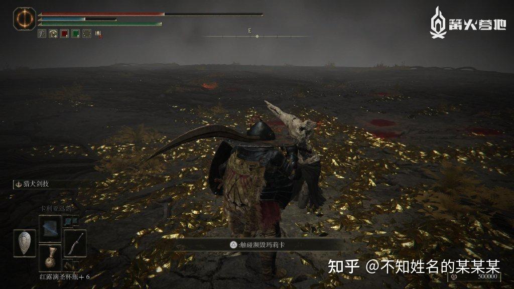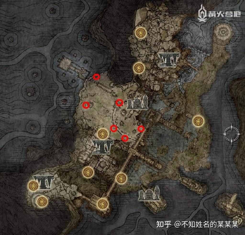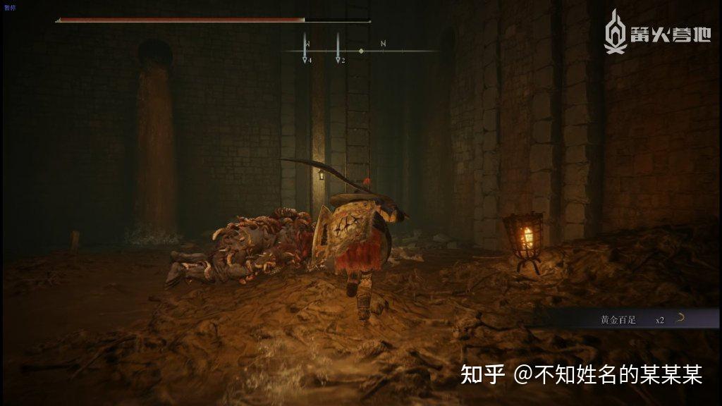 从赐福「火焰大锅下方」动身,向着西边走能够来到「安歇教堂」,拿到「圣杯露滴 ⑫」。在那里会碰到红灵「血指老翁」入侵,击杀能够获得兵器「尸山血海」。再从赐福「火焰大锅下方」动身,往东北标的目的走来到下图位置能够看到一棵小黄金树,拿到「黄金种子 ㉘」。