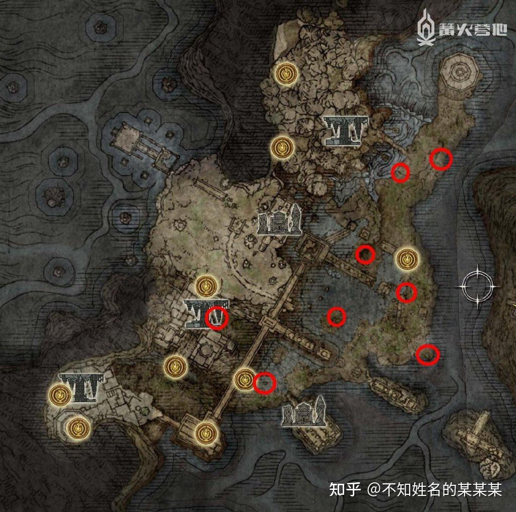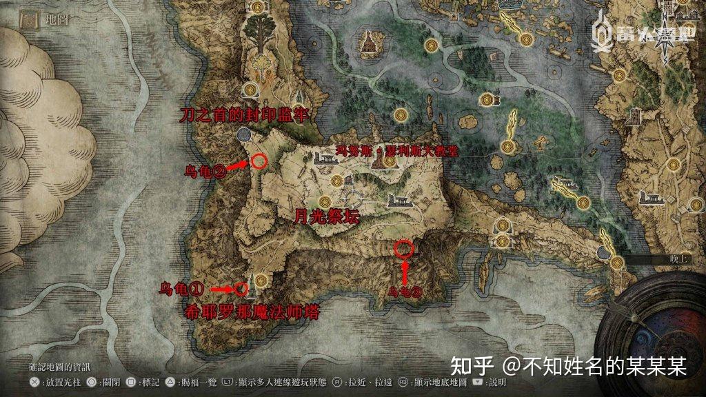 然后来到月光祭坛西南侧的希耶罗那魔法师塔,和门口的封印互动一下,开启该魔法师塔需要找到三个乌龟,位置如下(次要找乌龟的途中不要与赐福互动,不然会呈现乌龟消逝的 Bug):