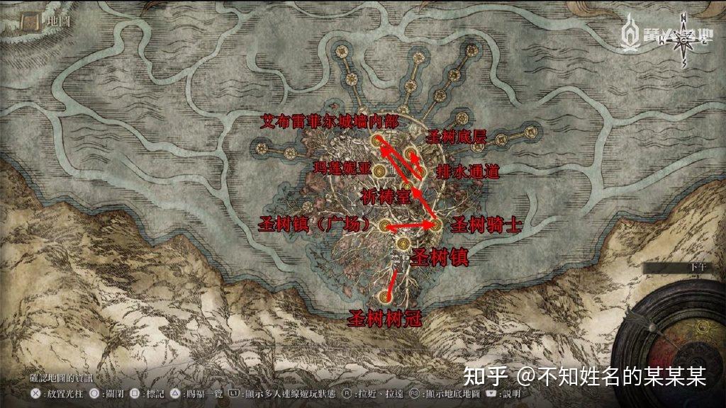 回到宁姆格福东边的小黄金树,能找到「希芙拉河的入口井」,在角骸灵地前楼梯下面的尸体处拿到地图碎片,鄙人图找到「黄金种子 ④」(替代之前没杀 NPC「肯尼斯·海德」所以没拿到的种子),那片区域能够找到「灵依墓地铃兰 1」「灵依墓地铃兰 2」「灵依墓地铃兰 3」,从赐福「崇奉者丛林」附近倾圮的柱子上的传送门能够来到上层,那片区域能找到「灵依墓地铃兰 4」「灵依墓地铃兰 5」。