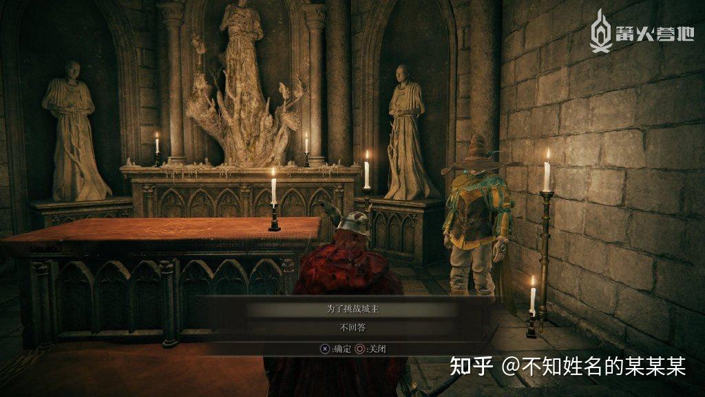 再次从赐福「城墙塔」出来,右前方的尽头教堂(需要跳到三只鹰所在平台右侧下方)里会找到罗杰尔,和他对话选择「为了挑战城主」,并能够进修战技。