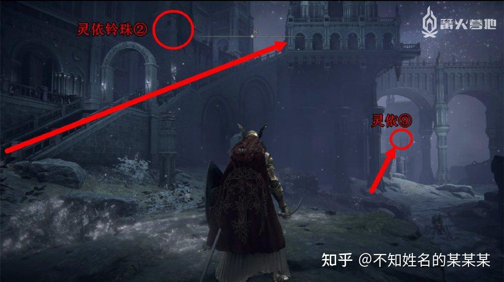 从赐福「祖灵丛林」的悬崖跳到对面的楼边来到「黑夜神域」,能够看到靠近赐福「祖灵丛林」的下方有个坐在巨石椅子上的巨人尸体,我们的目的就是来到她的椅子下边,从正对巨人左侧的楼顶来到右侧楼内,有一个需要用石剑钥匙开启的雾门,翻开里面的宝箱能够获得传说骨灰 ④「反身泪滴的骨灰」。