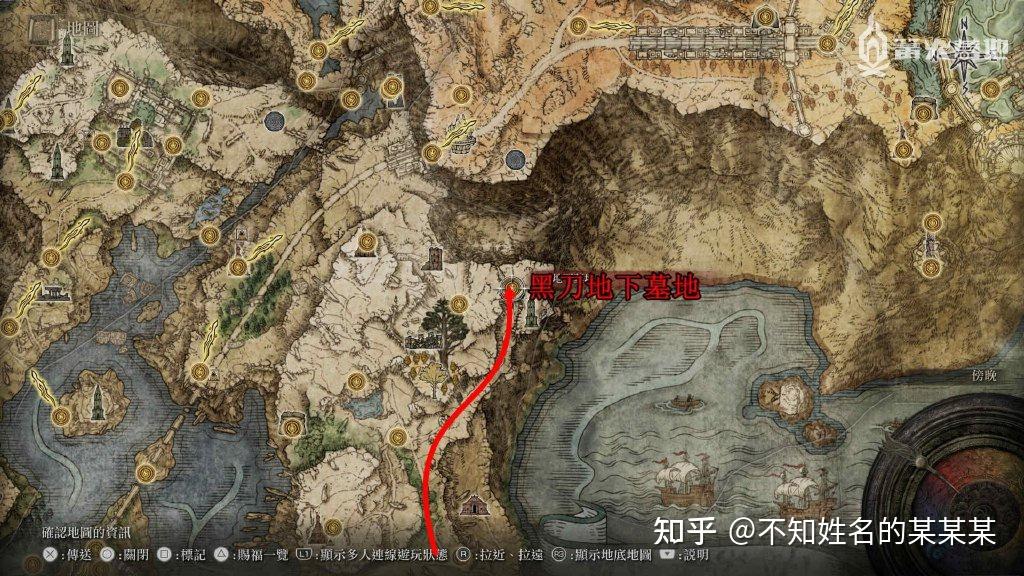 从湖之利耶尼亚东边的「安瑟尔河的入口井」来到地下世界,沿着下图道路能够找到 Boss「诺克史黛拉的龙人兵士」【Boss 奖杯 / 成就 ⑮】,它背后的巨人尸体下面的宝箱能够拿到「大朵灵依墓地铃兰」。