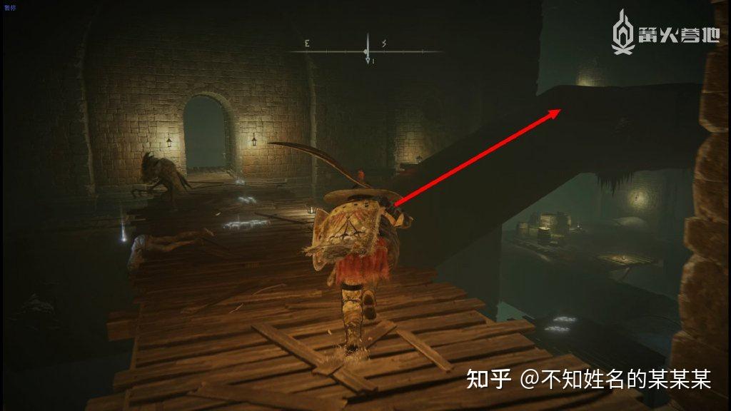 继续前进,尽头右转,此次要畴前方的坑落下去,然后继续前进向下跑,走到尽头左转跑,从梯子趴下去。坐着起落梯下去,前方就是赐福「弃置凶兆的底层」。
